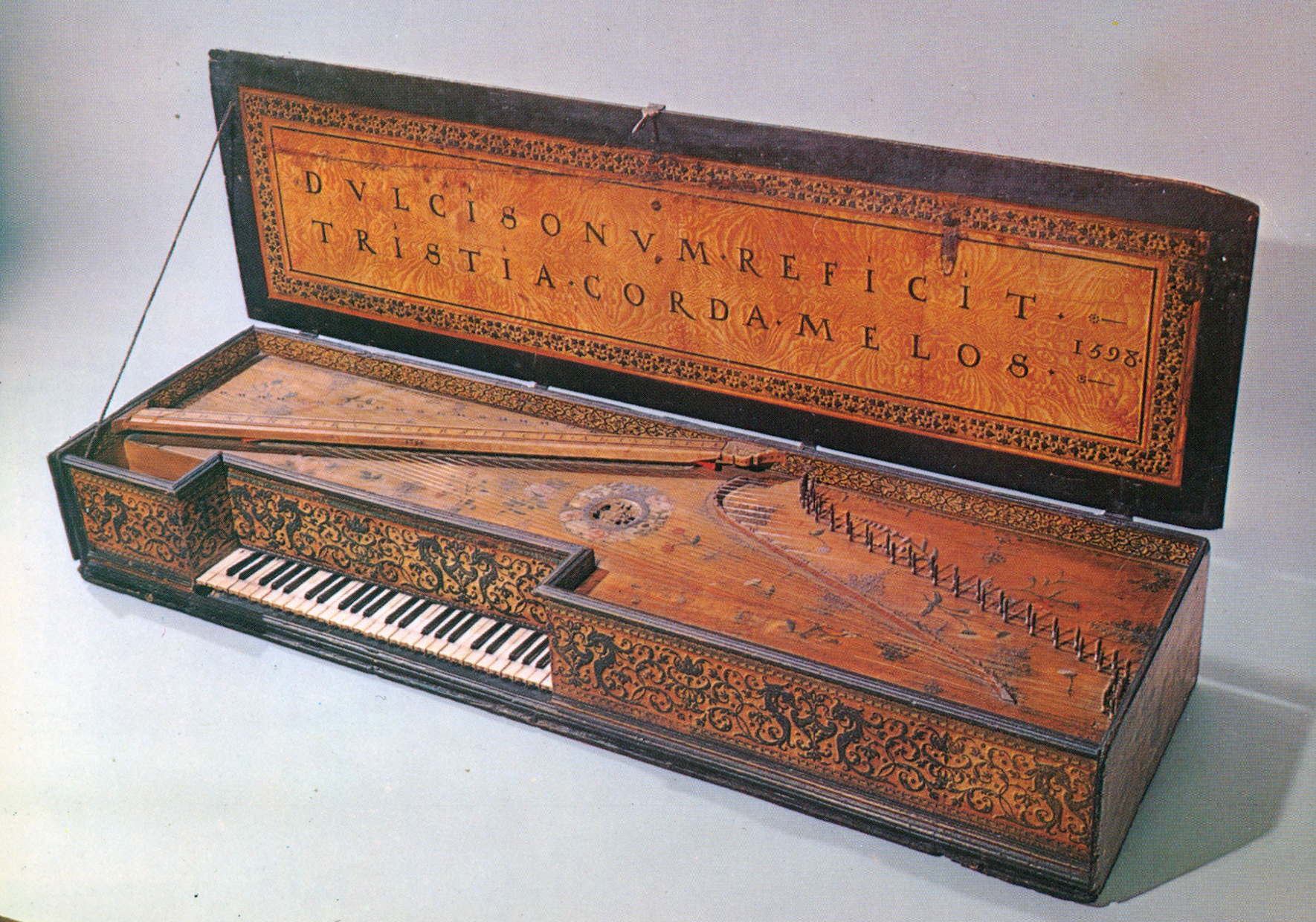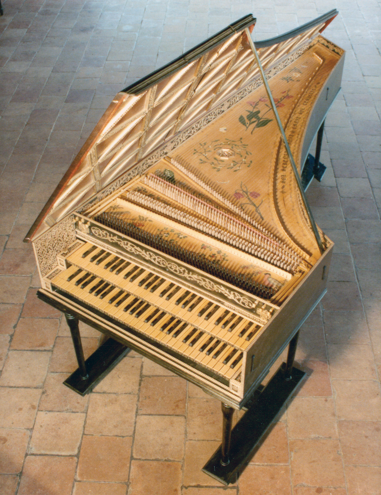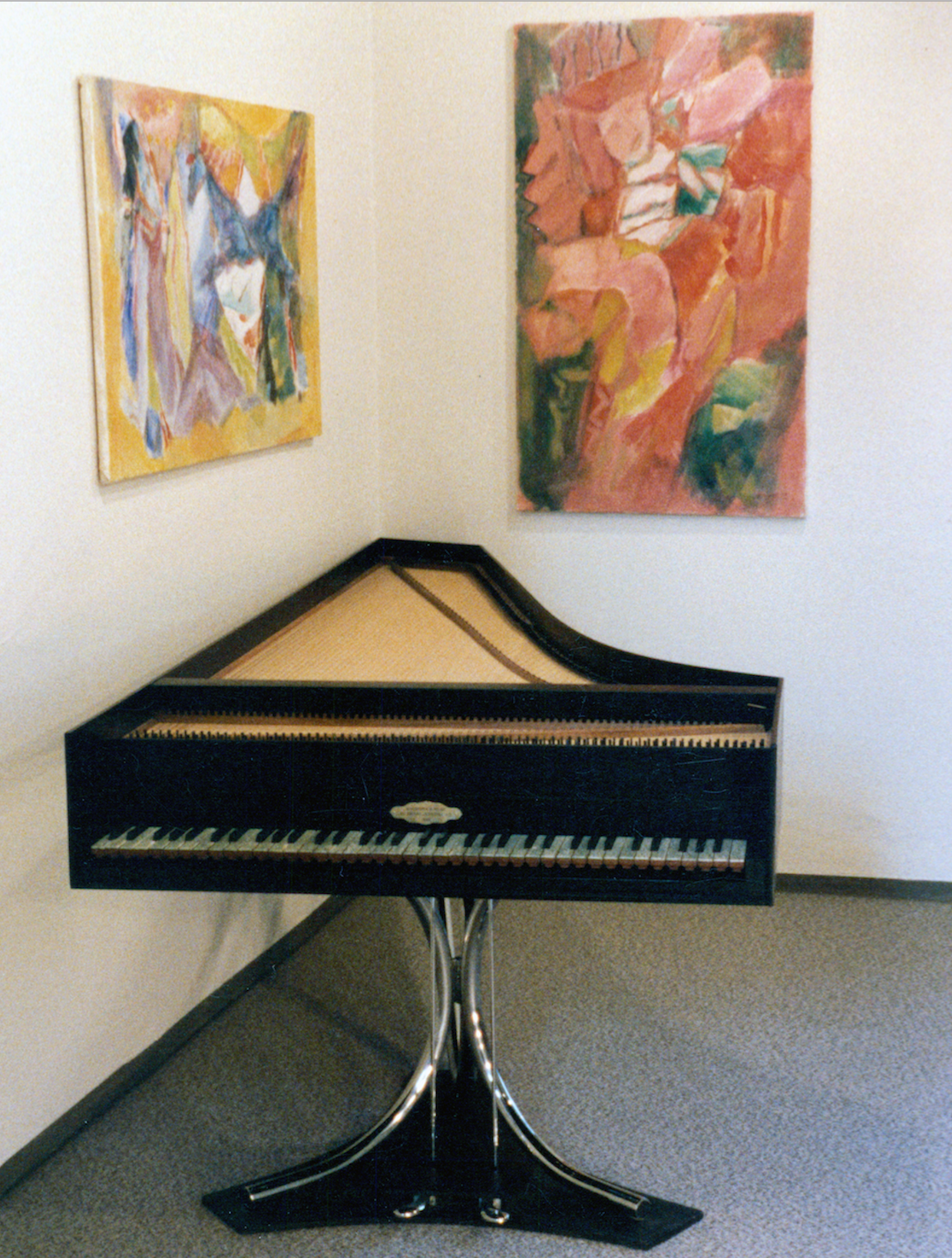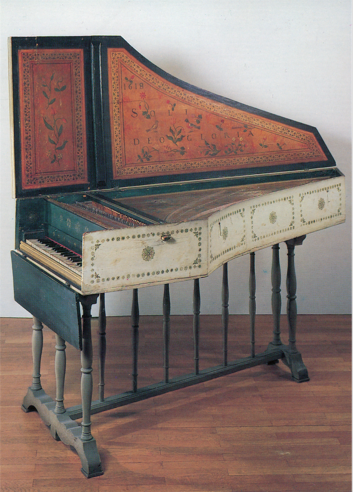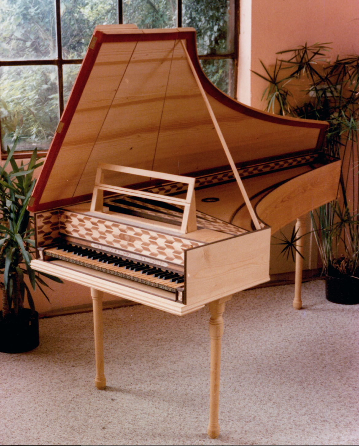 Aus dem bisher Gesagten ist verständlich, warum wir kein festes Bauprogramm anbieten, sondern unterschiedliche Instrumente aus verschiedenen Schulen zeigen wollen:- flämische Instrumente aus dem nördlichen Europa nach Moermanns und Bull,- aus dem Süden italienische Cembali und Poligonale z.B. nach Zenti und Pertici,- und aus dem Herzen Europas Cembali nach Schmuz und Stehlin, sowie das einzige uns bekannte süddeutsche Virginal-Cembalo.Dieses Virginal-Cembalo sei als Zeuge für die Experimentierfreude und Fantasie der "Alten Meister" angeführt. Vermutlich gebaut um 1600, signiert mit "A.R." und prächtig dekoriert, besitzt dieses Instrument zwei Nasarde - der erste reißt mit Messingnasen an, der zweite mit Federkielen -, zwei Register, die etwa italienischen Anreißpunkten entsprechen, und ein weit hinten anreißendes Register wie beim Virginal. Ausserdem wirkt bei diesem außergewöhnlichen Instrument der Lautenzug auf 3 Register.