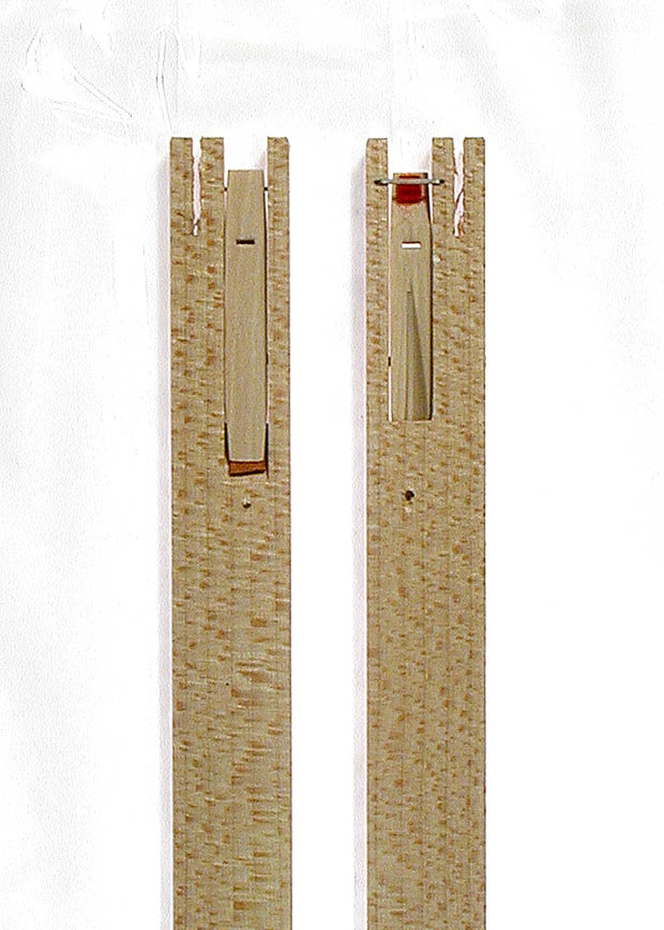 Sauber und maßhaltig! Diese Springer tun in meinem Italiener in Kombination mit einem historischen Blockrechen und Vogelfedern seit 8 Jahren klaglos ihren Dienst... Zwei Dämpferschlitze rechts und links des Züngleins nach historischem Vorbild wären natürlich besser, ich lasse den Dämpferstreifen aber auf beiden Seiten überstehen, so dass bei zwei Registern trotzdem jede Saite an zwei Stellen gedämpft ist. Das ist mehr Aufwand einzurichten, funktioniert aber erstaunlich gut und dauerhaft!