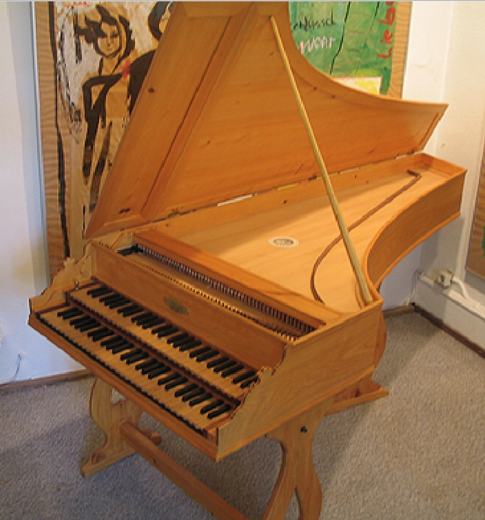 Der Nachbau wurde im Baß zur vollen Oktave erweitert und mit den Transpositionsmöglichkeiten 415/440/465 Hz versehen. Er ist mit 2 x 8' in Eisen bezogen und an Stelle des 4' steht ein zusätzliches 8'-Register, das durch seinen näher beim Stimmstock gelegenen Anreißpunkt eine nasalere Klangfarbe hat.